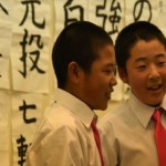 お楽しみの新年会では、書初めによる団員達の力強い決意発表がなされました。そして、チーム対抗かくし芸大会では各団員怖気づくことなく、会場の爆笑を誘いました。